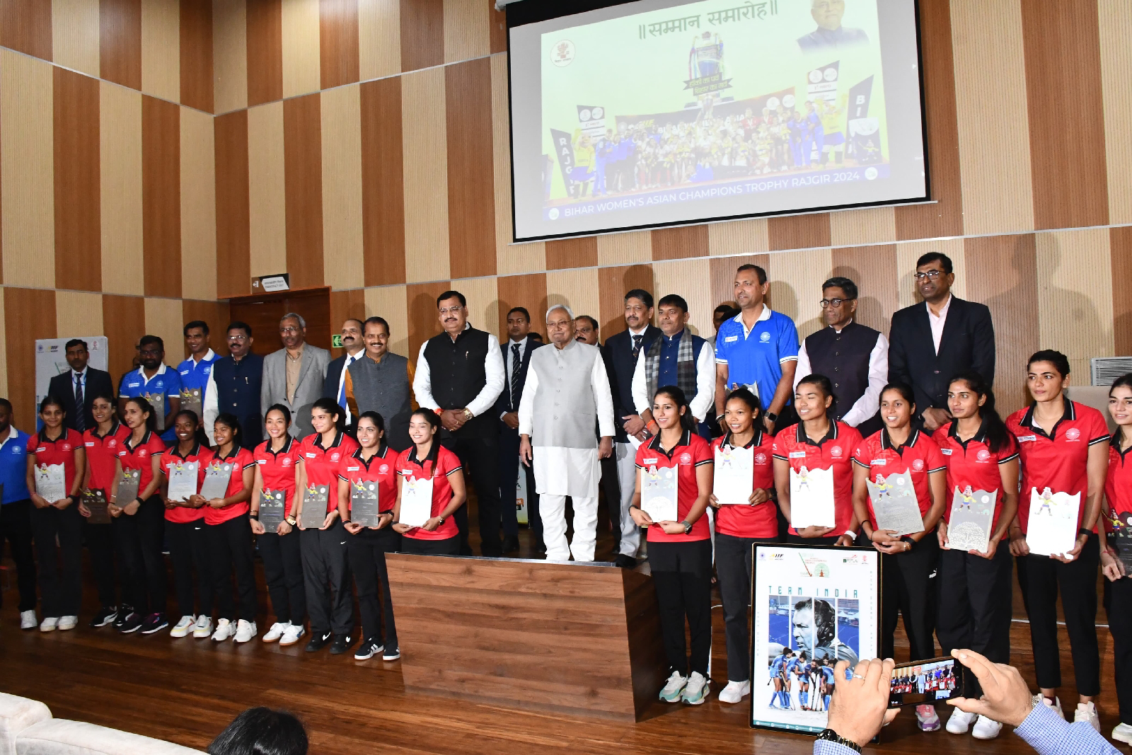 मुख्यमंत्री ने बिहार विमेंस एशियन हॉकी चैंपियंस ट्रॉफी 2024 की विजेता टीम इंडिया तथा इस आयोजन को सफल बनाने में बहुमूल्य योगदान देनेवालों को किया सम्मानित